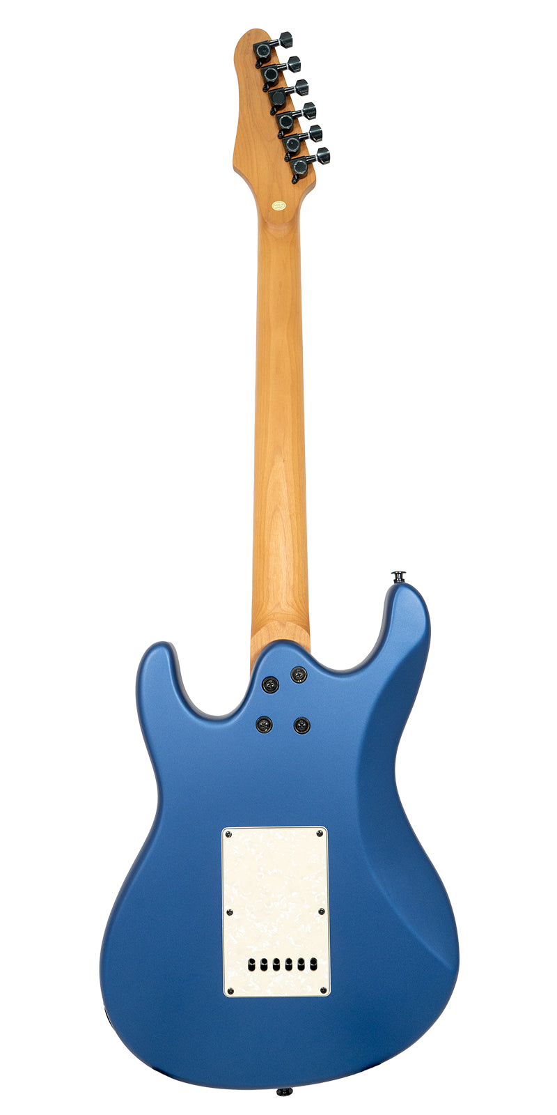 Una guitarra eléctrica potente y versátil con clavijero en línea. Su mástil de arce tostado de perfil moderno en forma de C y diapasón de palisandro de radio 12" ofrecen comodidad y precisión. Cuerpo de álamo de doble cutaway con top de álamo, equipada con 2 single coils y 1 humbucker cerámicos para tonos variados. Puente tipo trémolo, hardware cromado, controles de volumen/tone dobles, selector de 5 posiciones con coil tap. Disponible en Metallic Blue (MEB), Metallic Red (MER), Metallic Purple (MPL) y Metallic Silver(MTS).