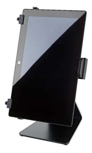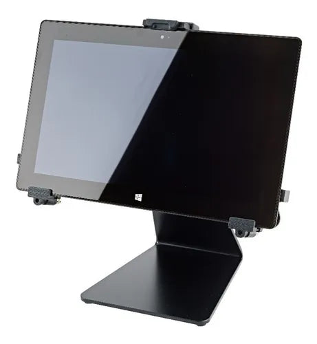 Soporte de mesa para tablet PC, con elegante base que le proporciona un soporte firme y ajustable a necesidad, cuenta con brazos ajustables a la mayoría de las tablets PC del mercado.